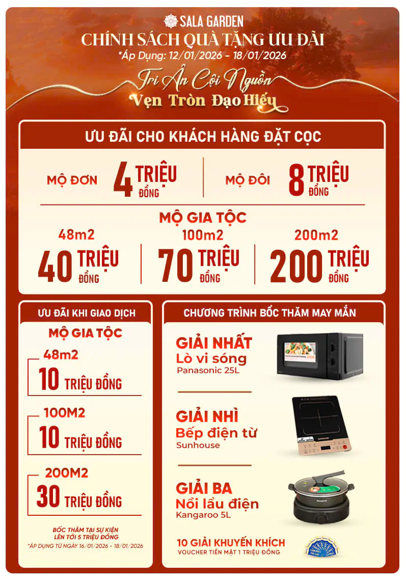 Đây cũng là dịp để đội ngũ Sala Garden cùng gửi đến khách hàng một lời tri ân thật ý nghĩa qua sự kiện đặc biệt tháng này.